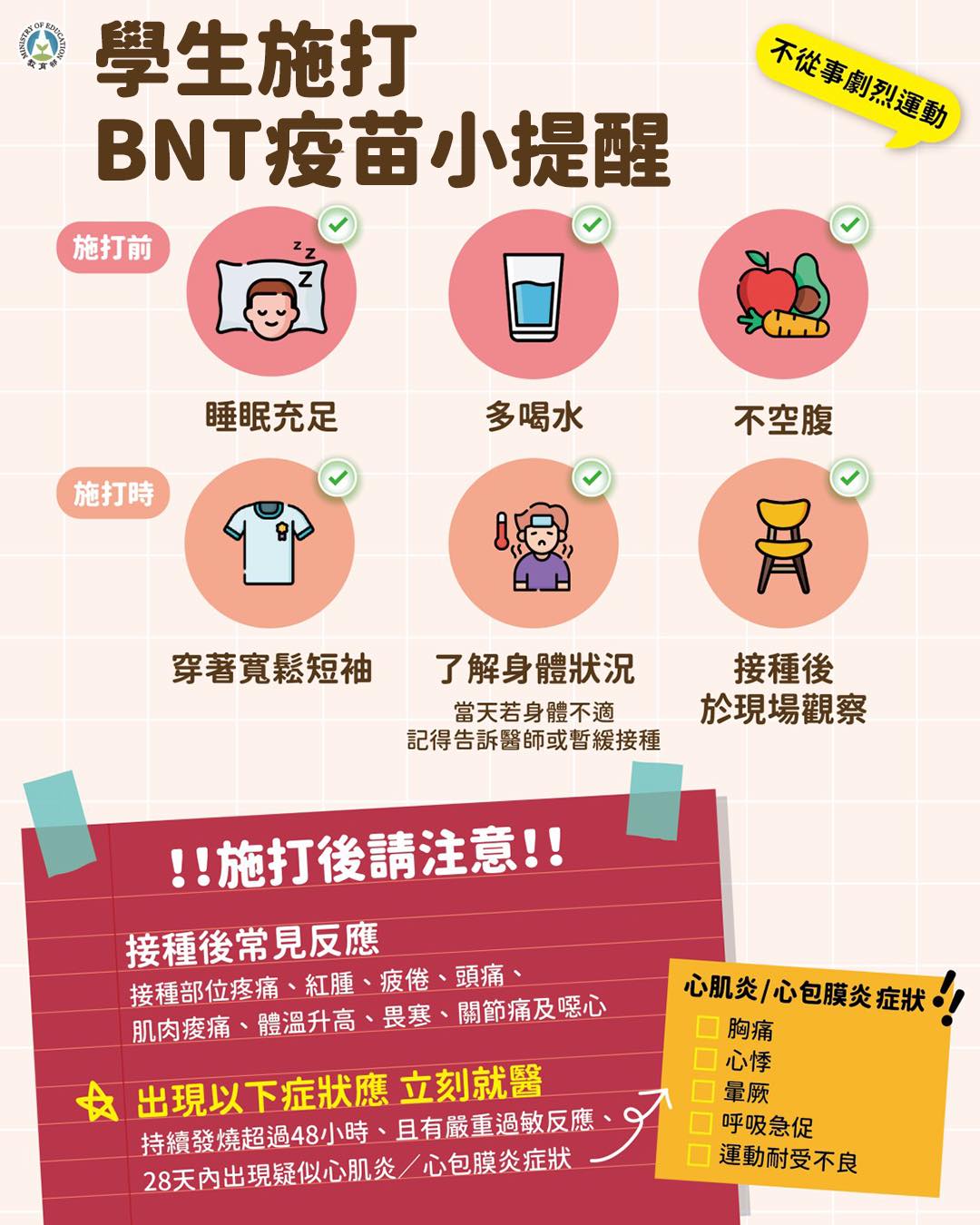 校園學生陸續施打BNT疫苗,教育部整理施打疫苗的注意事項,分享給各位家長及孩子們!
