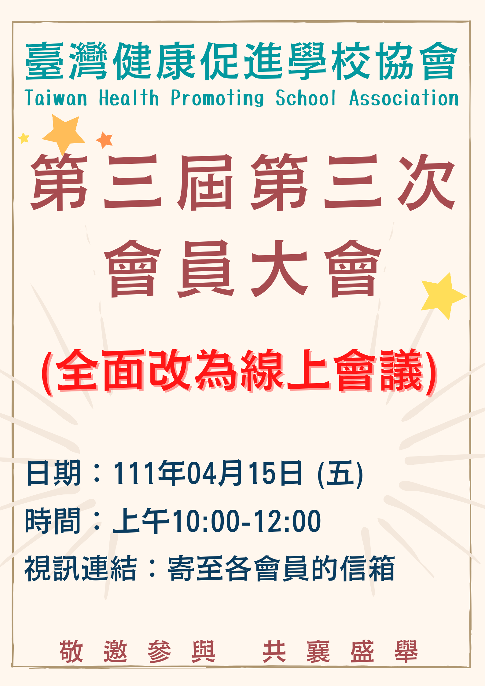 因應本土疫情嚴峻,本會今年度的會員大會,將在111年4月15日早上10:00-12:00採用線上視訊方式舉行。